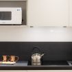 The two elegant bathrooms are designed with sleek finishes and spacious walk-in showers, offering a ultimate relaxation.