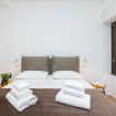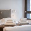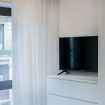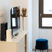 The apartment boasts two beautifully designed bedrooms: the master bedroom with a double bed, plush linens, and soft lighting for a peaceful retreat, and a second bedroom with a French-size bed, perfect for additional guests or those seeking a cozy, private space. Both of them have a TV.