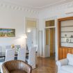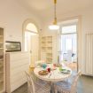 Lo spazio è ampio e raffinato, con un doppio salotto caratterizzato da tre grandi finestre che riempiono l’ambiente di luce naturale. L’arredamento moderno e confortevole include divani accoglienti, una TV e un grande tavolo da pranzo per otto persone, perfetto per cene e momenti di convivialità.