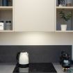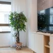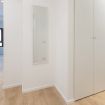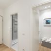 L’interno dell’appartamento è caratterizzato da toni neutri, come beige, grigio chiaro e avorio, che conferiscono un’atmosfera elegante e rilassante. I materiali di alta qualità, come il parquet in rovere e gli arredi moderni, donano un tocco di classe e comfort a ogni ambiente.
