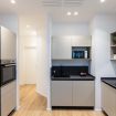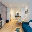 La zona living è spaziosa e ben progettata, con un divano letto, una TV a schermo piatto e un tavolo da pranzo elegante. L’angolo cottura è completamente attrezzato con elettrodomestici moderni, per garantire la massima funzionalità durante il soggiorno.