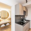 Situato al quarto piano di un edificio con ascensore, questo moderno ed elegante open space, è un alloggio ideale nel cuore di Roma. Letto king-size, zona soggiorno con tavolo, divano letto e TV led, ampio bagno con doccia, angolo cottura con forno a microonde.. L’appartamento è dotato di aria condizionata, riscaldamento e Wi-Fi.