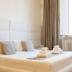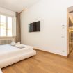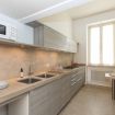 L’appartamento misura 170 mq e ha tre camere da letto e tre bagni completi più un bagno di servizio, un ampio ingresso che dà accesso a un primo salotto con due divani, collegato alla sala da pranzo con grande tavolo per 10 persone, dalla quale si accede infine al vero e proprio salotto, con ampi divani e televisione. Tutte e tre le stanze affacciano su Via Crescenzio e sono quindi molto luminose. La cucina è abitabile, moderna e completamente accessoriata. La camera da letto principale ha una grande cabina armadio ed è collegata a un ampio bagno con vasca e doccia. La seconda camera da letto ha due letti singoli, e la terza un letto a una piazza e mezza. Gli altri bagni hanno la doccia.