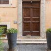 Ci sono alcuni scalini da salire per raggiungere la porta di ingresso.