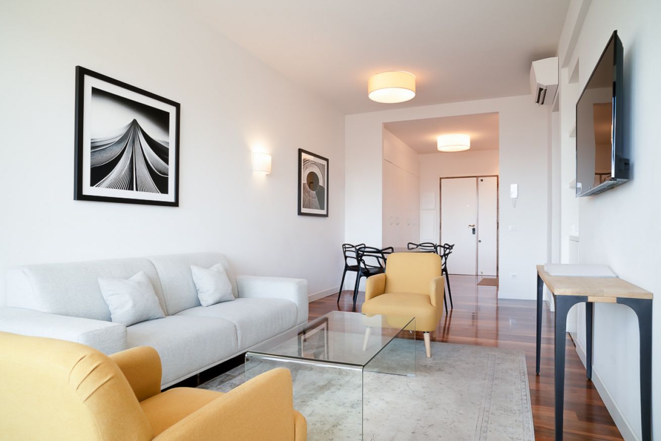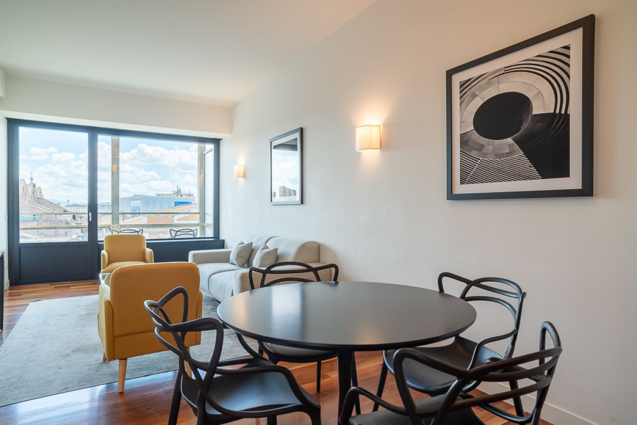 Questo bellissimo e luminoso appartamento recentemente ristrutturato, si trova al quinto piano di un accogliente palazzo, con servizio di portineria H24 e ascensore.