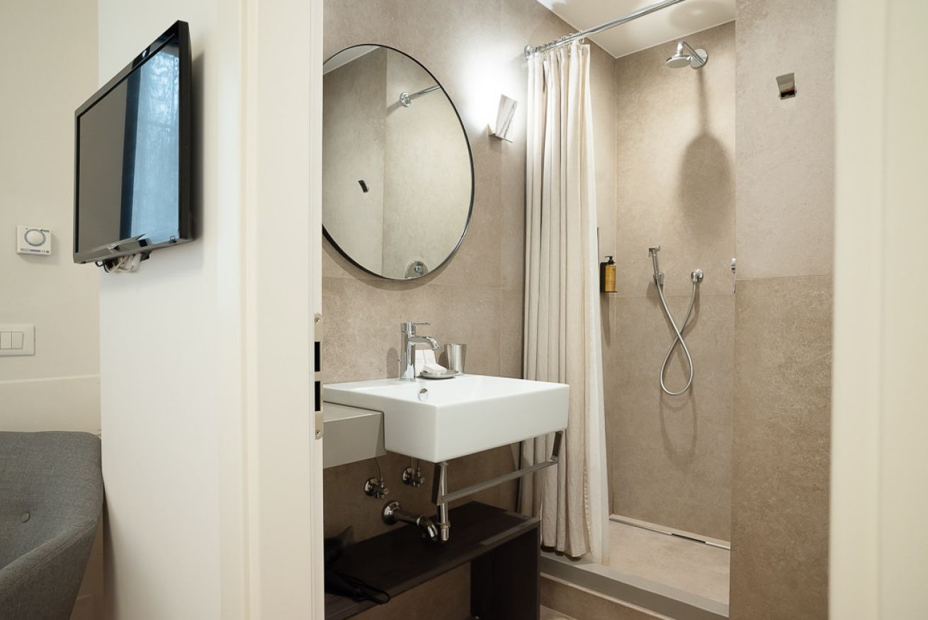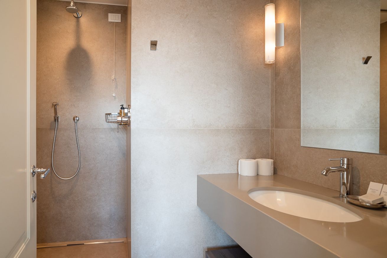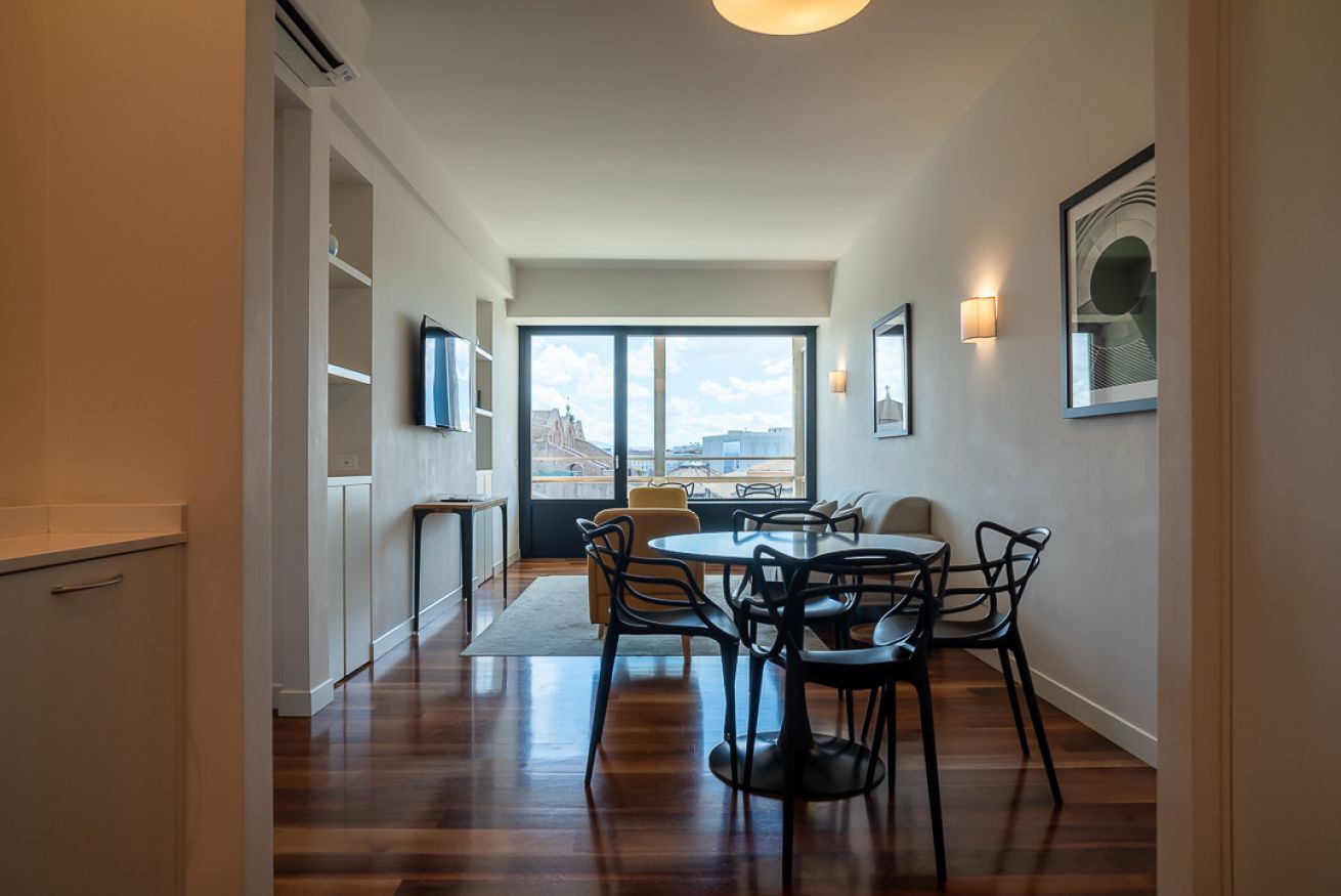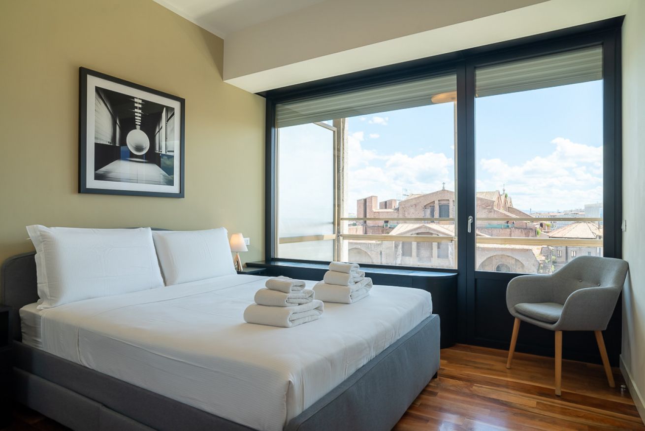 Uno degli spazi più suggestivi è senza dubbio la terrazza, alla quale si accede sia dal salotto che da una delle due camere da letto, un angolo perfetto per leggere, fare colazione o ammirare la vista su uno dei siti archeologici più importanti di Roma, le terme di Diocleziano, il Chiostro di Michelangelo, la Basilica di Santa Maria degli Angeli, il Planetario, il Museo Archeologico di Palazzo Massimo e Piazza della Repubblica con la sua splendida fontana.