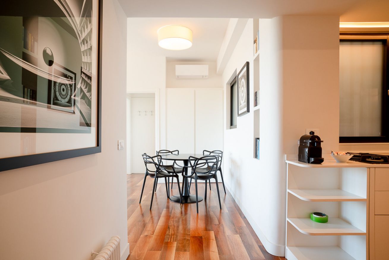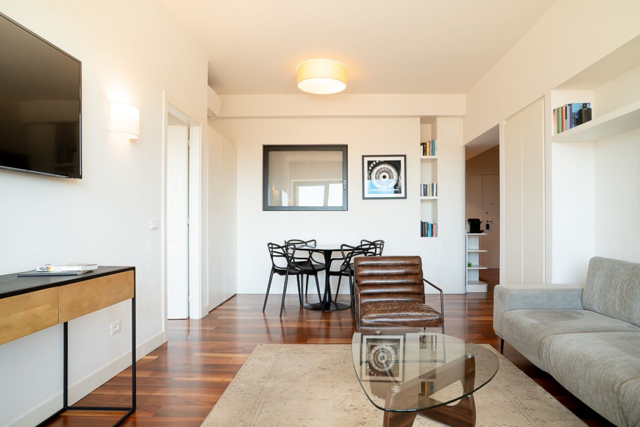Questo bellissimo e luminoso appartamento recentemente ristrutturato, si trova al quinto piano di un accogliente palazzo, con servizio di portineria H24 e ascensore.