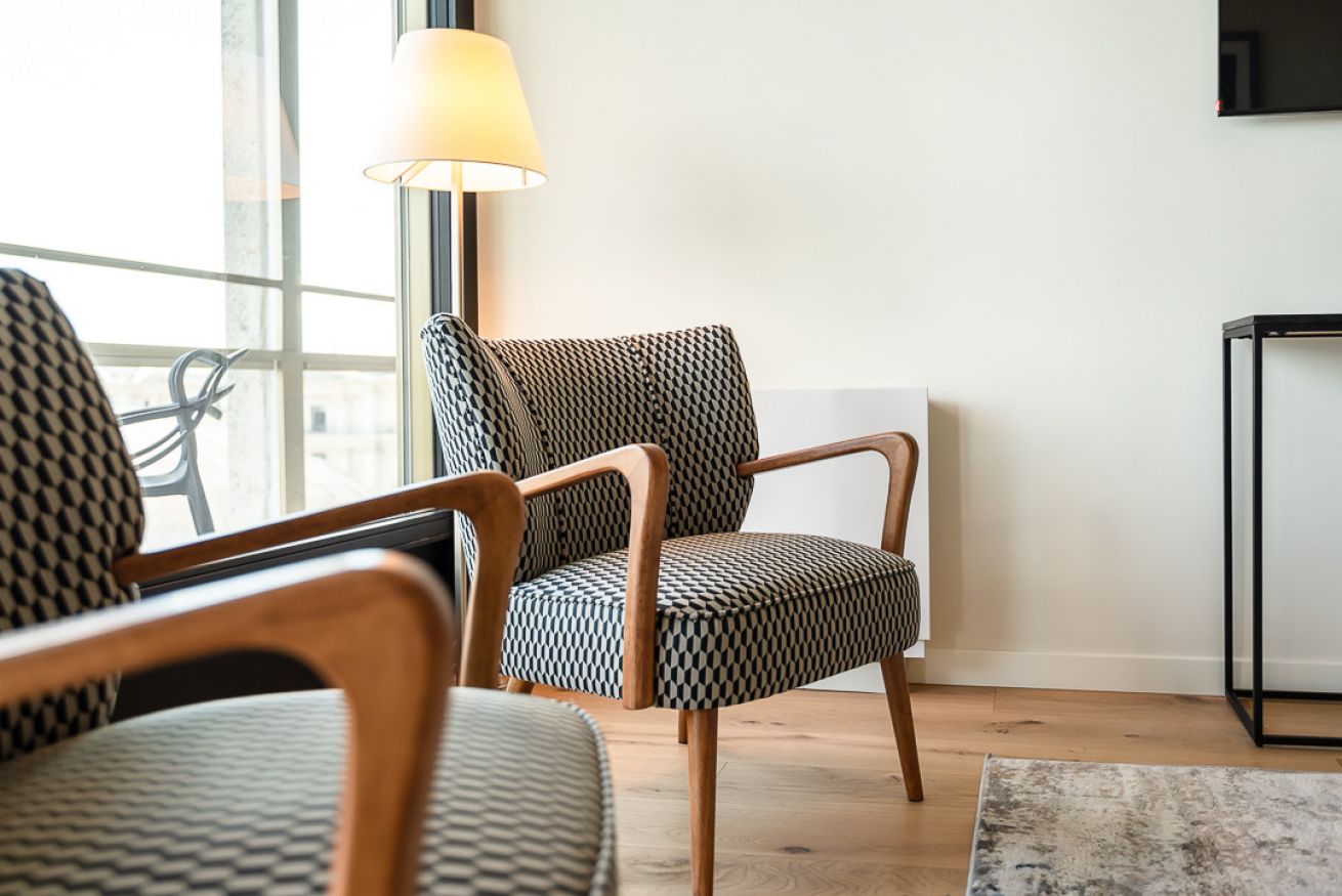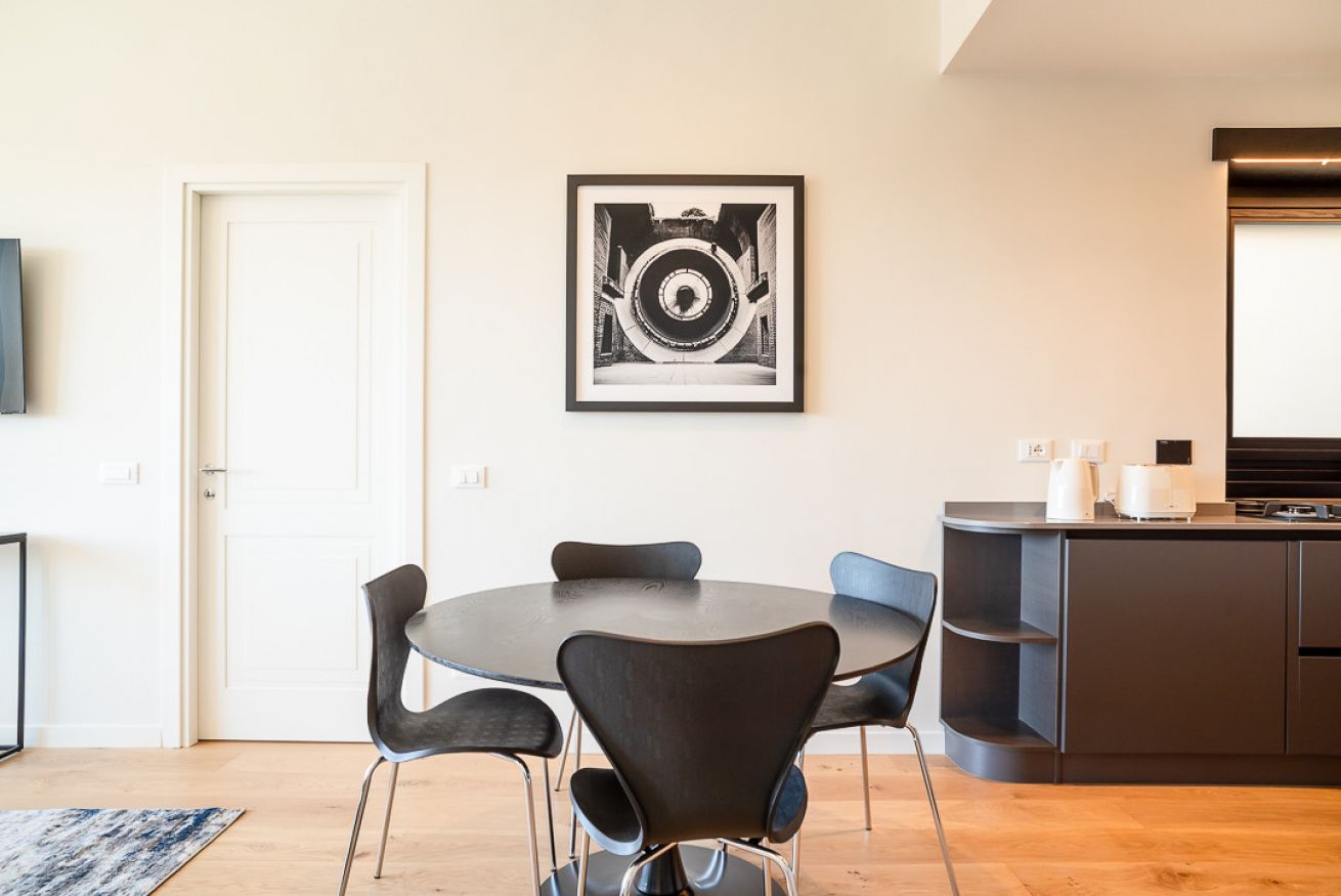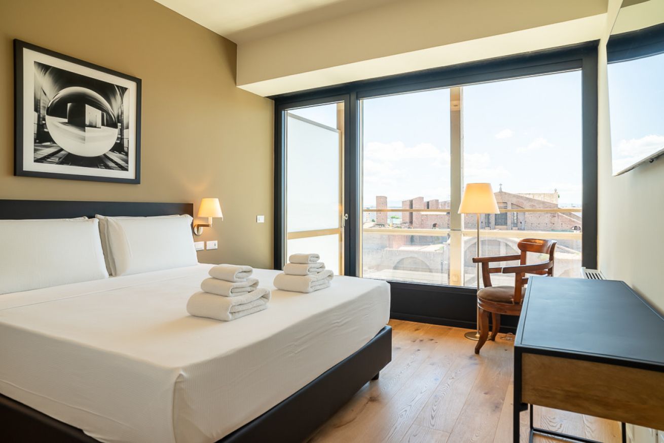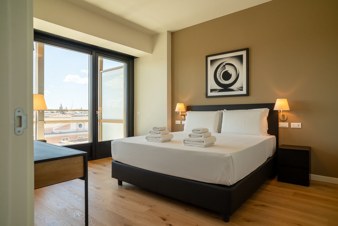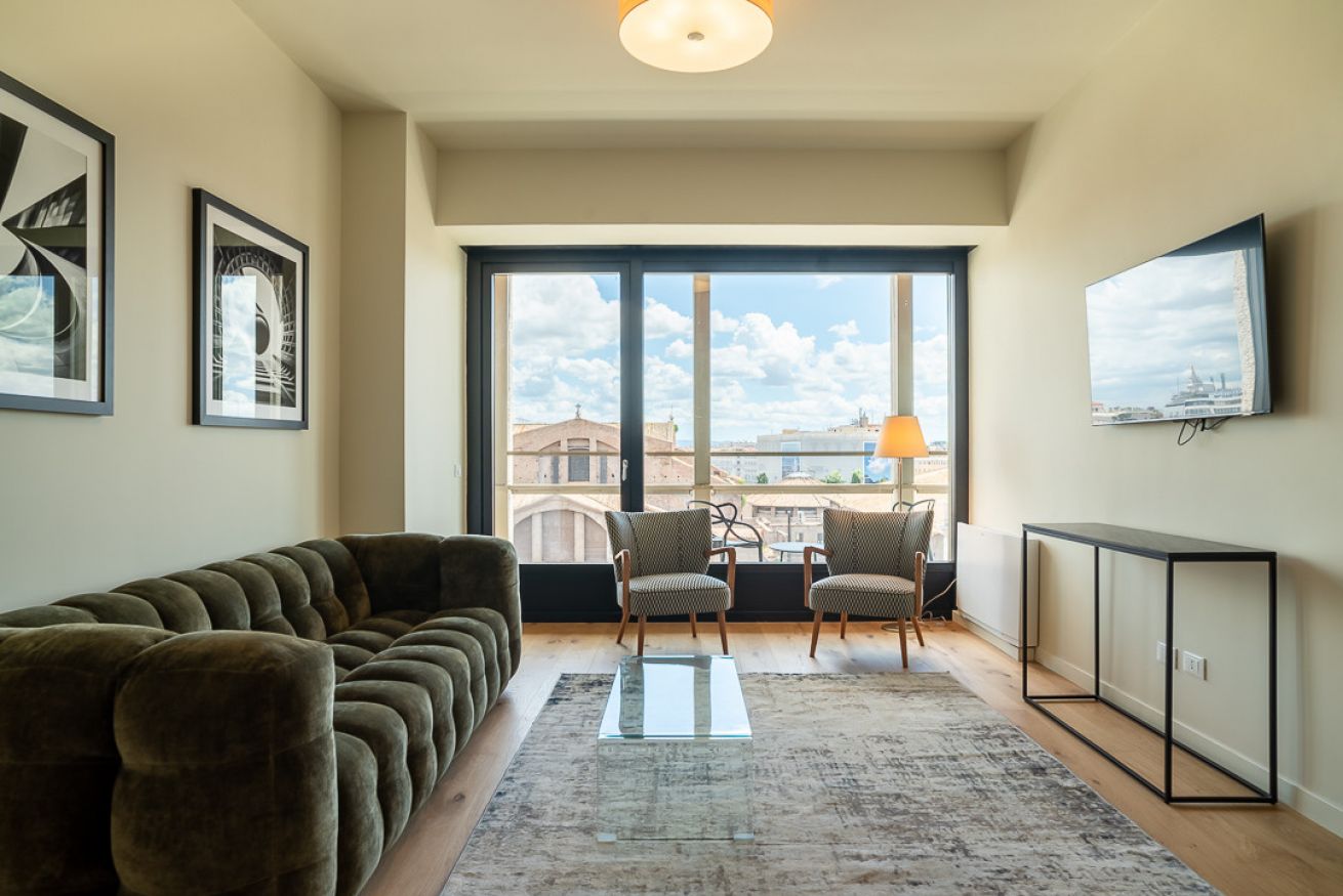 Uno degli spazi più suggestivi è senza dubbio la terrazza, alla quale si accede sia dal salotto che dalle due camere da letto, un angolo perfetto per leggere, fare colazione o ammirare la vista su uno dei siti archeologici più importanti di Roma, le terme di Diocleziano, il Chiostro di Michelangelo, la Basilica di Santa Maria degli Angeli, il Planetario, il Museo Archeologico di Palazzo Massimo e Piazza della Repubblica con la sua splendida fontana.